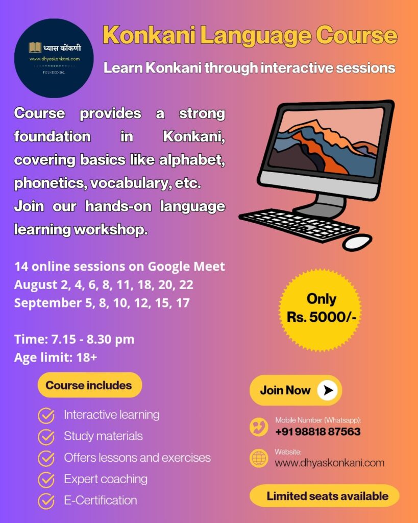 Course provides a strong foundation in Konkani (Goan), covering basics like alphabet, phonetics, vocabulary, etc.